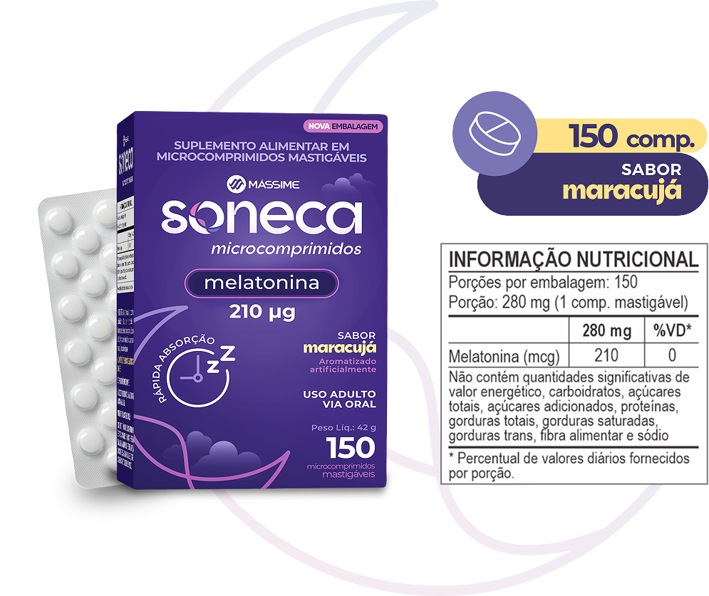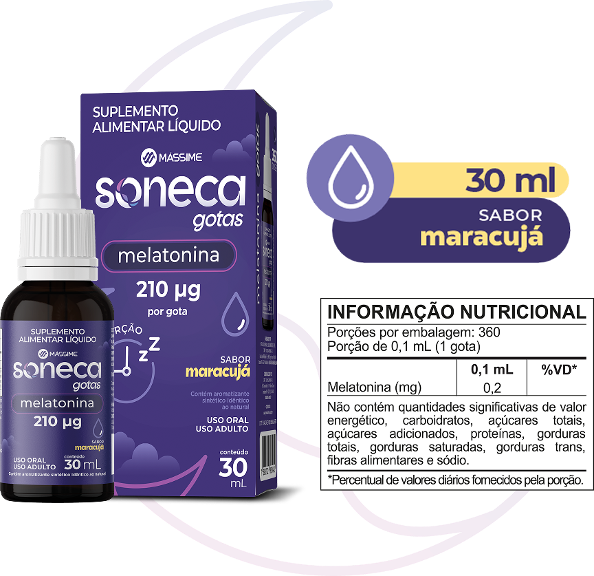 Soneca Melatonina é a solução perfeita para auxiliar e otimizar a qualidade do seu sono. Promove um adormecer mais rápido, garante um sono profundo e ininterrupto, e minimiza os despertares antes da hora. Diga adeus às noites mal dormidas e combata os efeitos do jet lag com Soneca Melatonina, que ajusta o seu ciclo de sono de forma natural.